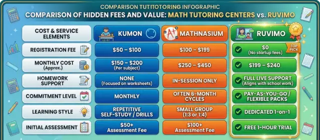 At that point, many families start searching for extra help. Two of the most well-known options are Kumon and Mathnasium, both of which have helped students for years through structured math practice and learning centers. Recently, though, newer online tutoring options like Ruvimo have also started appearing in those conversations, especially for parents who want something more flexible or personalized.